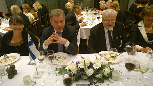 Liiton 110-vuotisjuhlassa 2015 puhui tasavallan presidentti Sauli Niinistö daaminaan varapuheenjohtaja Marketta Mattila. Oik. puheenjohtaja Jyrki Vesikansa ja Raili Koroma.