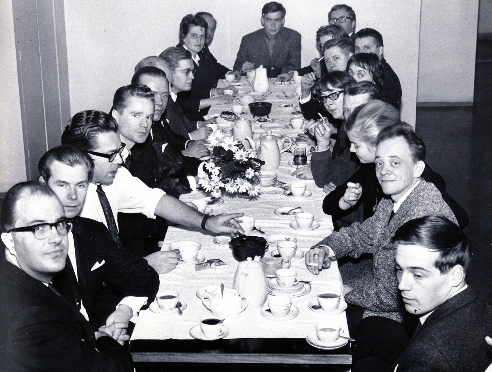 US:n toimitusta Veikko Löyttyniemen läksiäisissä 1964 (vas.): Unto Teräsvirta, Raimo Markkanen, Kauko Väyrynen, Veikko Löyttyniemi, Eero Jäppinen, Jouko Ruotsalainen, Niilo Luukanen, Anita Bask, Jyrki Könönen, pöydän päässä Pekka Tarkka, sitten Olavi Hurmerinta, Lidia Iranto, Jyrki Vesikansa, Aarne Tanninen, Mirjam Polkunen, Aila Poukkula, Esko Muinonen, Tuula Ikonen, Nils Rosberg ja Pentti Heimolainen.