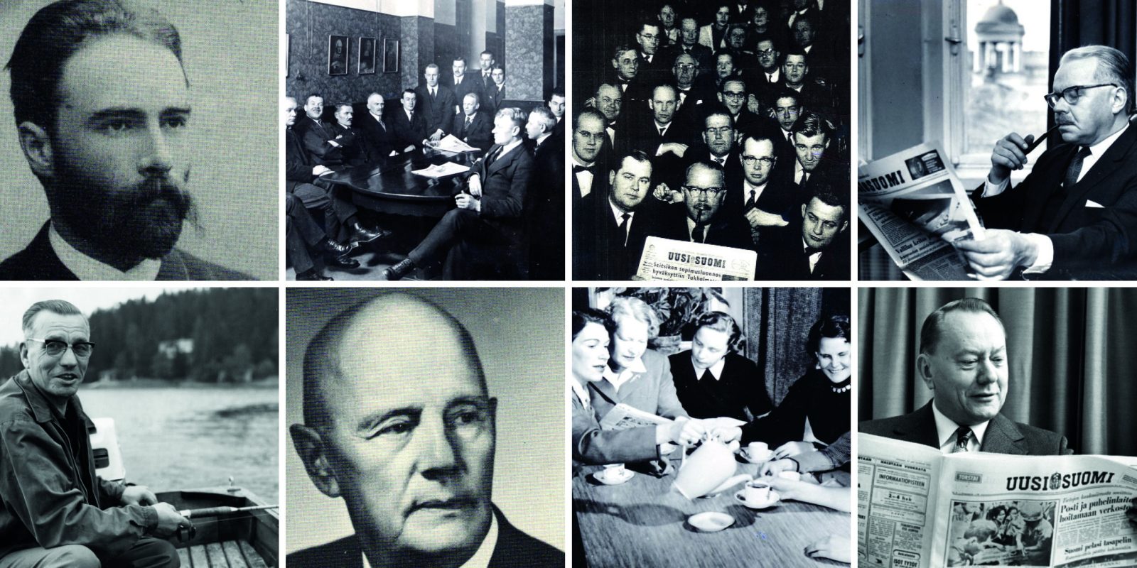Uuden Suomen kovin miehinen toimitus 1920-luvun alussa. Viides vasemmalta päätoimittaja ja SSL:n puheenjohtaja Ernst Nevanlinna. Seinällä kansallisten suurmiesten muotokuvia.