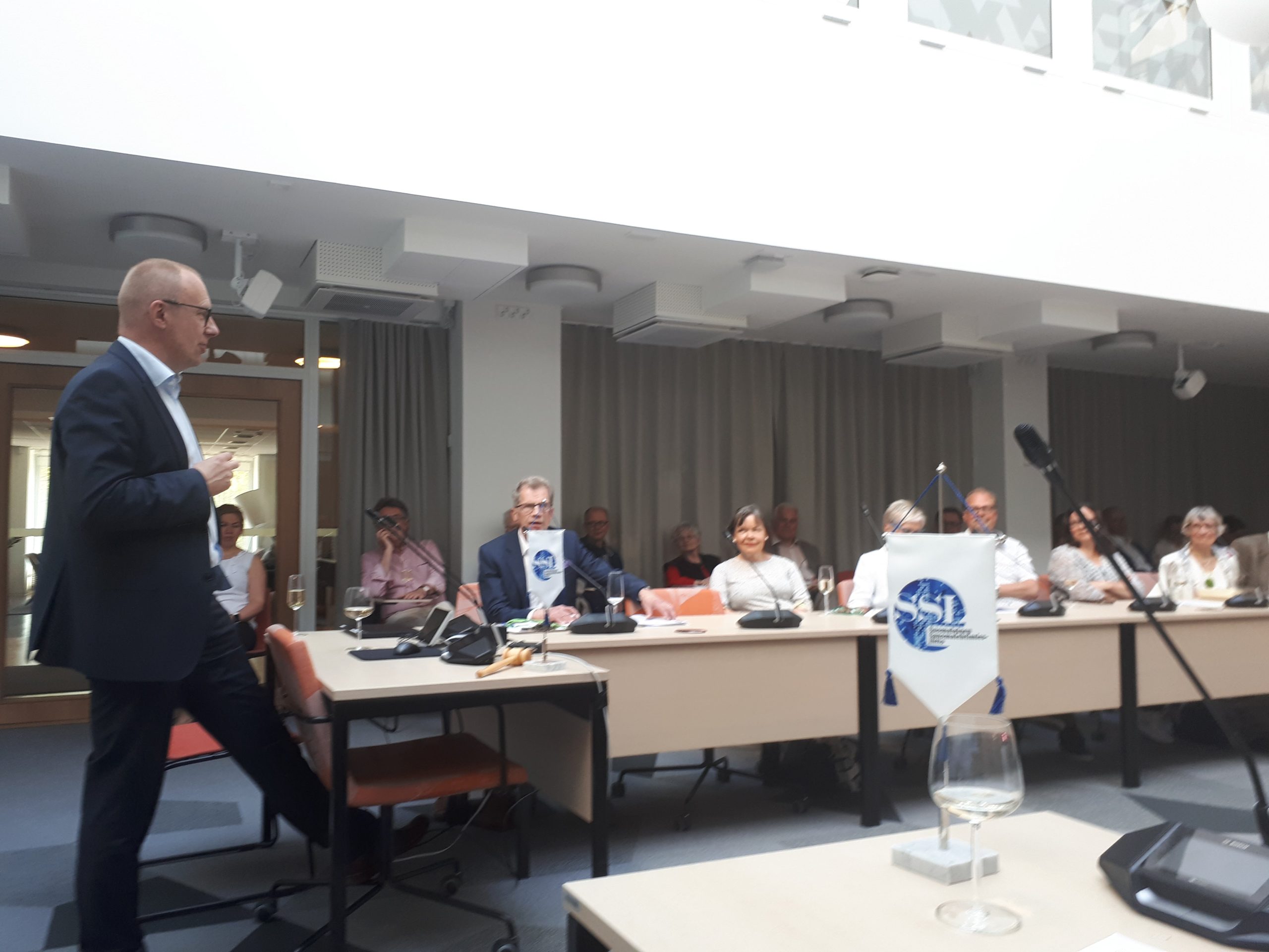 Seuraava vuosikokous pidettiin SAK:n tiloissa, heidän vieraanaan (15.5.2018). Toimitusjohtaja Jarkko Eloranta toivottaa meidät tervetulleiksi.