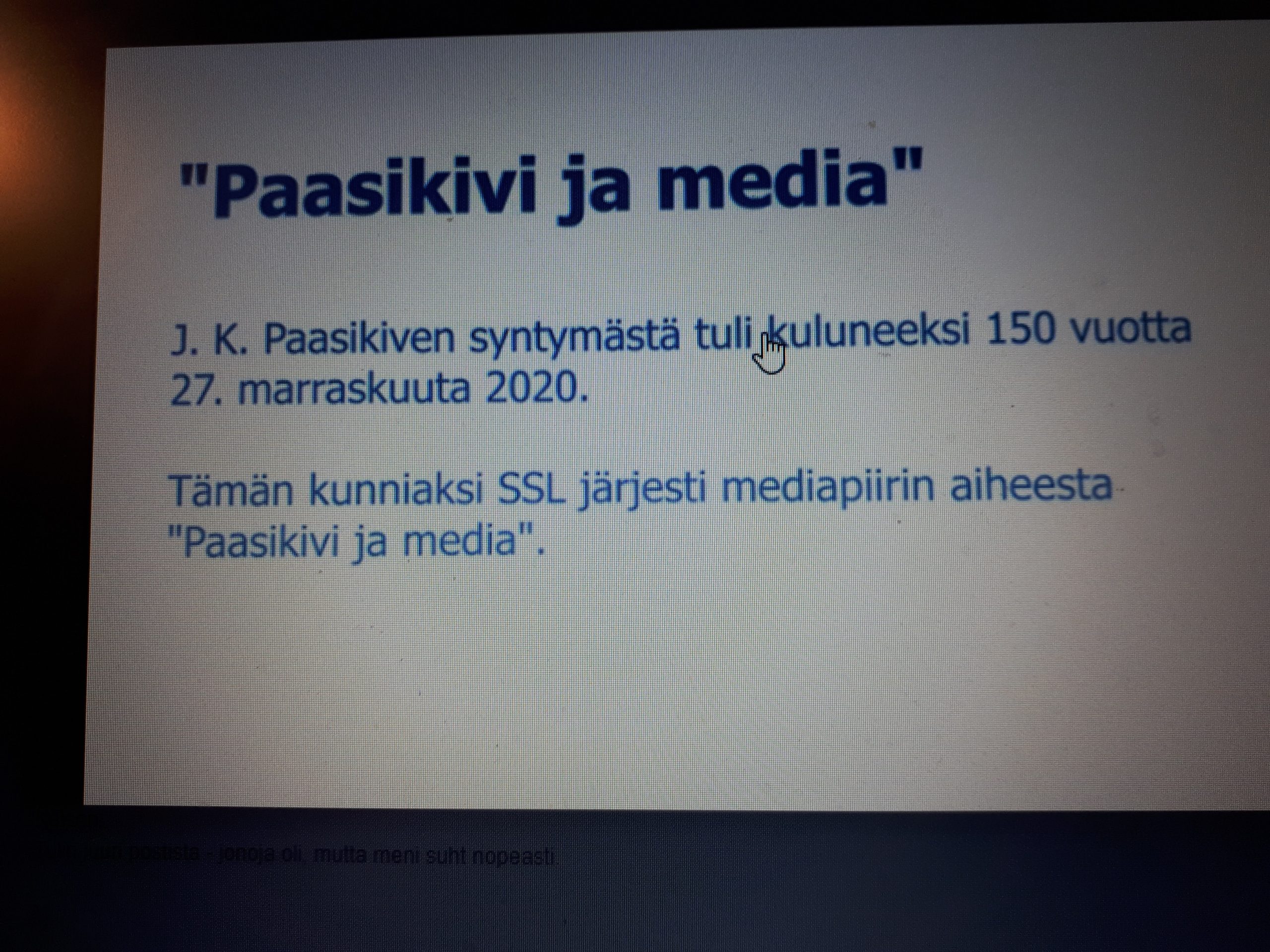 Martti Häikiö suunnitteli syksyn Mediapiiriä aiheena ”Paasikivi ja media”, olihan Paasikiven syntymästä kulunut 150 vuotta 27.11.2020. Tilaisuus oli tarkoitus järjestää Kansallisarkiston isossa tutkijasalissa. Se ei onnistunut tapaamisrajoitusten vuoksi.