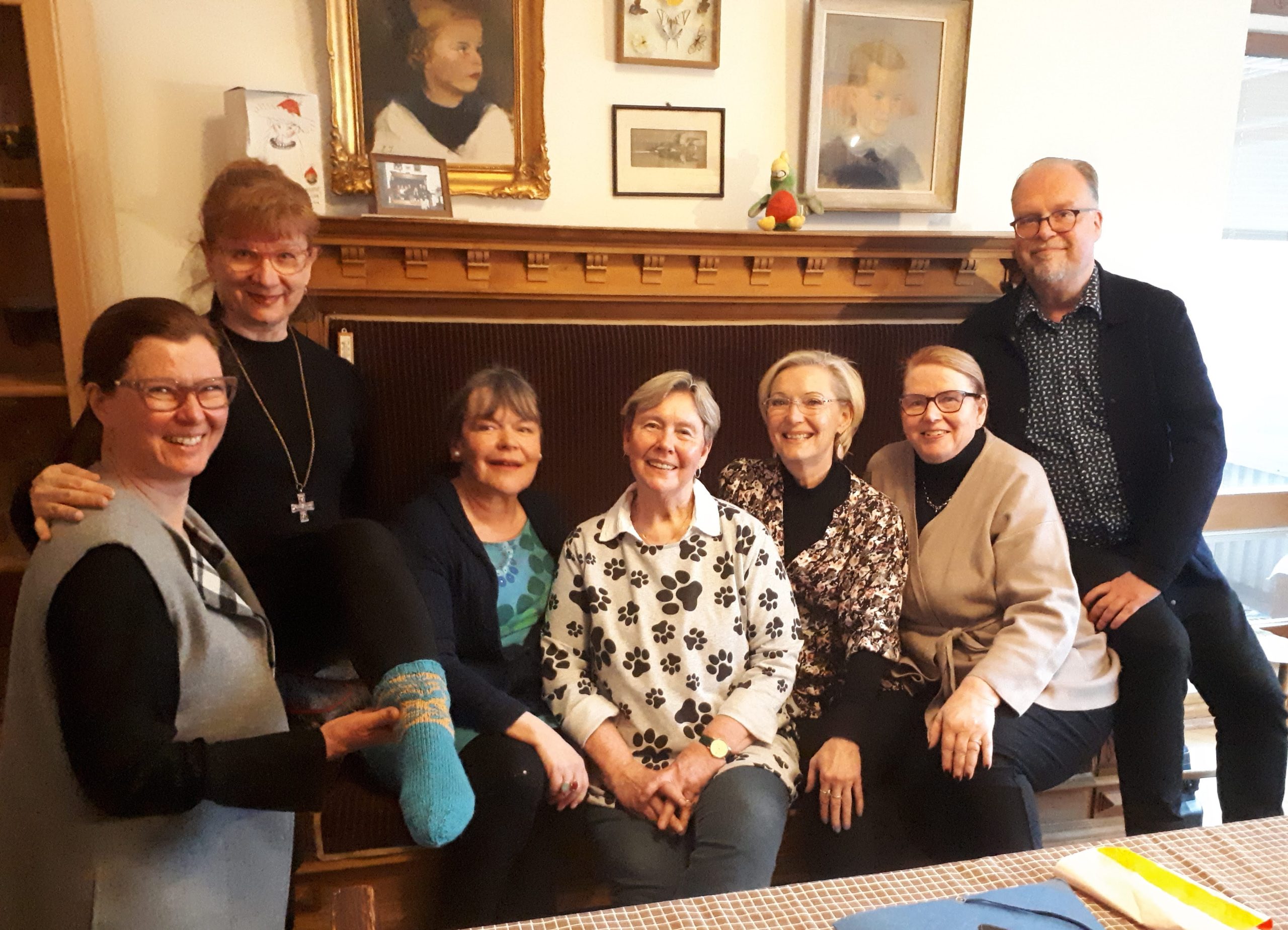 Perinteinen kokous puheenjohtajan kotona ja perinteinen kuva. (Katso ensimmäistä kuvaa vuodelta 2018.) Silja, Heljä, Marketta, Maarit, Pirjo, Eeva-Liisa ja Pertti (4.4.2022).
